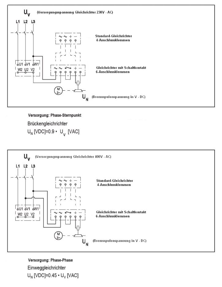 Jarrumoottoreissa käytetään yleensä kahdenlaisia tasasuuntaajia. Niitä kutsutaan siltasuuntaajiksi ja puoliaaltotasasuuntaajiksi. Siltasuuntaajia käytetään yleensä moottorikokoon 112 asti, ja niitä käytetään 230 V:n jännitteellä. Puoliaaltotasasuuntaajia käytetään yleensä moottorikosta 132 alkaen, ja niitä ohjataan 400 V:n jännitteellä.