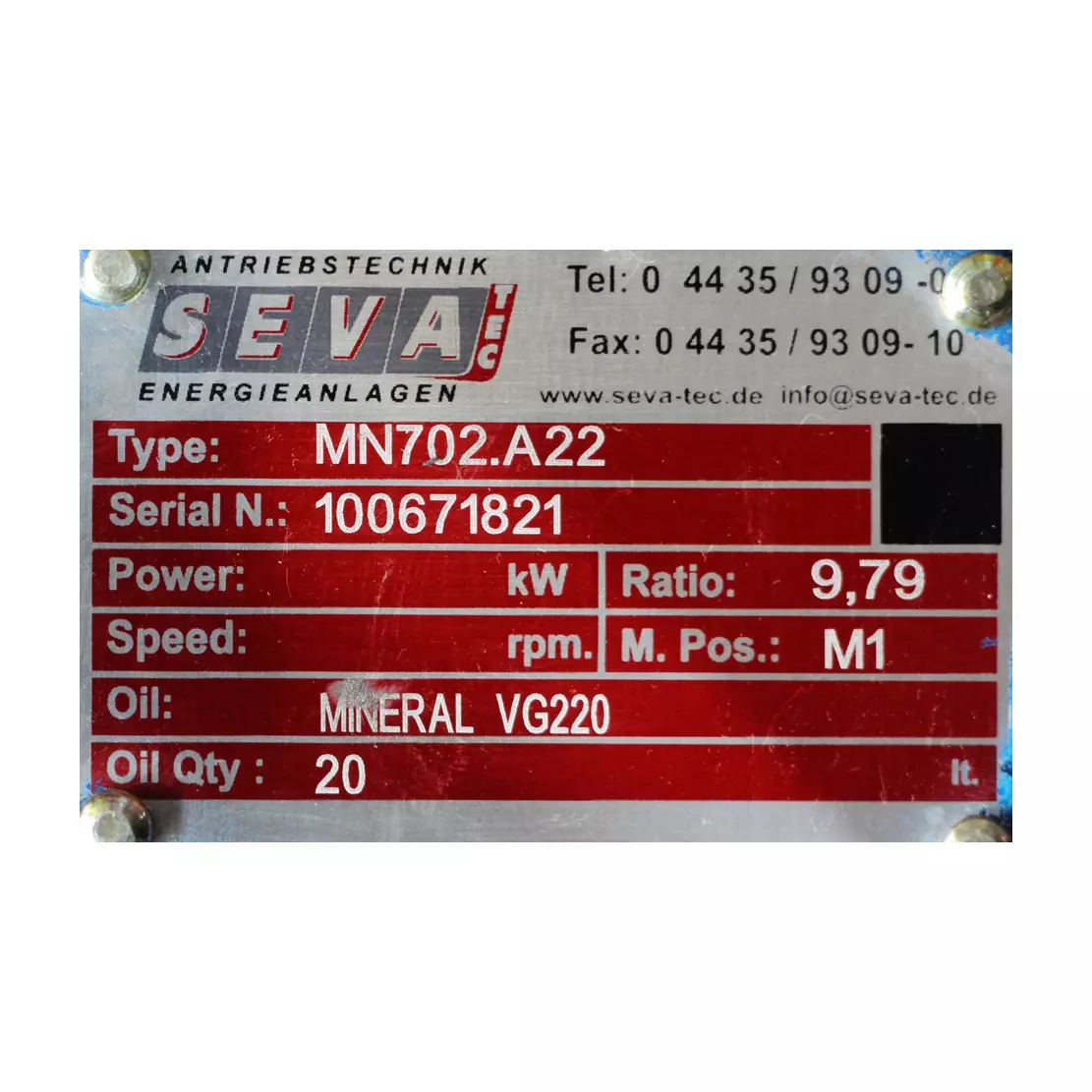 Tuotetiedot "MV702-225-4 - 37kW - 143rpm kierrosnopeudella toimiva kierukkavaihdemoottori"